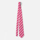Tie in a Mid-Century Modern striped pattern in shades of medium pink, fuchsia pink, and burgundy / wine red, accented with pastel pink