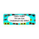 These return address labels have a mid-century modern design of retro sunglasses on a field of blue with a grid.