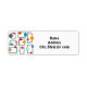 These return address labels have a Mid-century modern design of grey trapezoids with colourful circles on them.