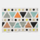 A 1950's style art pattern with triangles and dots in many colours such as orange, gold, yellow, sky blue, slate grey and black.
