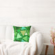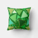 Mid-Century Modern geometric mosaic throw pillow - outlined triangles in shades of emerald and jade green, aqua and beige, on an emerald green background