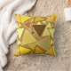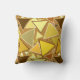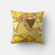 Mid-Century Modern geometric mosaic throw pillow - outlined triangles in shades of mustard yellow and gold, light yellow and tan, on a warm golden tan background