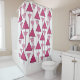 This shower curtain design has pink triangles strung together in vertical lines on a field of white.