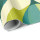 This artwork features a striking mid-century modern pattern composed of bold, abstract shapes and curves. The design is chraacterised by a repeating motif of elongated ovals and teardrop shapes in varying shades of green, teal, and yellow. Set against a light cream background with subtle distressed textures, the pattern creates a sense of depth and movement. The retro-inspired colour palette and geometric forms give the composition a vintage yet timeless appeal, making it a vibrant and eye-catching piece.