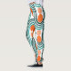 These leggings have a mid-century modern design of teal waves and orange circles.