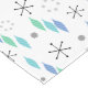 An atomic era retro design with a Christmas theme. Features silver snowflakes and turquoise and mint green Christmas tree ornaments.