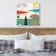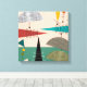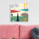 Mid-Century Modern Wrapped Canvas, colourful funky abstract squares and moon shapes in shades of orange, gold, brown and teal. A perfect addition to your mid century style.