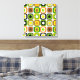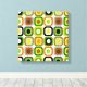 Mid-Century Modern Wrapped Canvas, colourful funky abstract squares and circles in shades of green gold, brown and black. A perfect addition to your mid century style.
