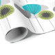 Mid-Century Modern Wrapping Paper Seed Pods design in blue and shades of grey. Perfect for the lover of Mid-Century modern gifts.