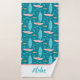 Mid Century Pink Catamaran - Blue Background Bath Towel Set