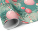 Overall, this wrapping paper beautifully captures the essence of mid-century modern design, infusing it with the warmth and joy of the holiday season. Its combination of pink Christmas ornaments, green background, and pine branches creates a delightful visual tapestry that's perfect for wrapping gifts with a touch of both retro flair and festive cheer.