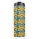 A Green, White And Orange Mid Century Retro Style Thermal Tumbler In And Abstract Design