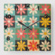 Mid Century Retro Daisy Pattern Square Wall Clock