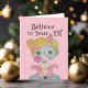 This cute Christmas design was created using my hand painted mixed media elf with quirky details and a green background with snowflakes for a unique and whimsical vibe. The soft retro colour palette of pinks, greens, and blues is perfect for the modern Holiday season and the funny "Believe in Your Elf" pun adds a touch of humour. Original art by Malissa Melrose.