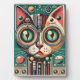 Mid Century Retro Futuristic Circuit Cat Plaque