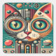 Mid Century Retro Futuristic Circuit Cat Square Sticker