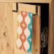 This is elegant mid century modern atomic starbursts pattern placed on ogee ovals in red, green, mustard and teal. It's great looking towel for your kitchen