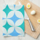 Mid Century Retro Starbursts Pattern Teal Blue Tea Towel