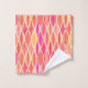 Towel set in a Mid-Century Modern abstract ribbon print in shades of coral pink, coral orange, peach and fuchsia pink, accented with white