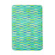 Mid-Century Modern abstract ribbon print bath mat in shades of turquoise and light lime green