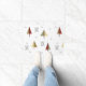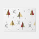 A 20th century modernist inspired abstract art design, with mid century modern styled winter trees in a forest, with simple minimalist snowflakes.