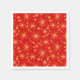 Digital reproduction of a Mid-Century Modern wallpaper pattern of spiked spheres inspired by the original Russian "Sputnik" satellite - shades of coral, orange, gold and white on a deep, tomato red background
