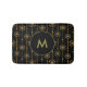 This monogrammed bath mat is embellished with a graphic pattern inspired by Mid Century Modern design with thin stripes and starburst motifs made up of circles in lively retro hues. All elements of this design may be customised with your choice of colour.