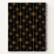 A graphic pattern inspired by Mid Century Modern design with thin stripes and starburst motifs made up of circles in lively retro hues embellishes both sides of this notebook. All elements of this design on either side may be customised with your choice of colour.