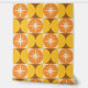 This is elegant mid century atomic starbursts pattern on orange circles and yellow half circles on squares. It's great looking decorative wallpaper for your home