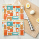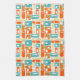Mid-century Turquoise Orange Rectangles Pattern Tea Towel