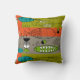 Mid-Century Whimsical Fish Art Teal Brown Orange Cushion