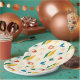 Mid mod atomic pattern with retro colour palette paper plate.