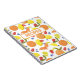 Fun ditzy pattern of fresh farmers’ market fruit in a Mid Century Modern style, with bold, vibrant colors and that distinctive grainy Risograph texture. Made of layers of red, yellow, and blue, with color misalignments and grunge effects.