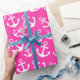 Mid Pink and White Anchors Nautical Pattern Wrapping Paper