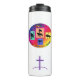 tumbler is firm and good size to hold a good grip on. Lid is durable as so is the tumbler itself. non breakable. holds just about 2 cups of coffee. image is good and stands out well for others to notice the printing of my artwork. the ink color black turned out well. that part I like.. it's solid and easily readable as far as the word/lettering is on the tumbler. The ink color Red is good as well, but the other colors not as vibrant as I thought, but yet I still like it!