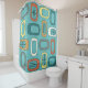 Midcentury MCM Rounded Rectangles Aquamarine Shower Curtain