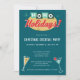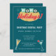 A fun retro design featuring midcentury modern elements with a "Ho Ho Holidays" billboard and cocktails on a dark teal background. Personalize this Christmas Cocktail Party invitation with your own party details. You can change the color of the background and the cocktails to suit your own style.