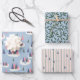 Cute and colourful designs are nostalgic yet modern with clean lines and contemporary colours. Designs include modern trees on mounds of snow, a pinstripe with trees and a classic holly sprig. Colours include blue, pink, green and white.