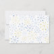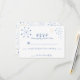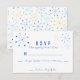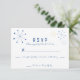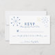 These custom printed wedding response cards or RSVP cards feature a fun retro vibe with a Mid-century Modern style design. Atomic asterisks or snowflake shapes adorn these RSVP cards. The asterisk shapes are in shades of blue and yellow with all text in royal blue.