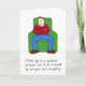 A grumpy man sits in his armchair with his arms folded. Underneath the image are the words 'Middle age is a constant struggle not to be irritated by everyone and every thing'.