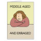 A cartoon woman looking very cross, with the words 'Middle Aged And Enraged'.
