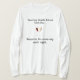 I love this shirt. I had written to the artist asking her if this picture was available on a shirt, and she wrote me back telling me where I could find the shirt. These shirts can be custom made to have a different saying. I loved this saying and went with it. The artist wrote me back later to tell me that she had seen my order go through. How's that for service? Pretty special. It's just as displayed. Perfect!