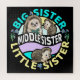 Middle Sister art has words Big Sister and Little Sister - because the middle sis is both a big and a little sis! Three hedgehog animals represent all the siblings. > Cute middle sister pride art to excite a sibling daughter who is going to be a big sister! > Personalise it! Add custom name, photo, or text.
