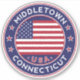 City of Middletown sticker with flag of United States, rounded shape