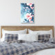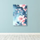 A captivating study of contrast and grace, this wall art features delicate blush pink and dusty rose florals set against a dramatic, textured backdrop of deep indigo and ethereal teal. The soft, ethereal quality of the flowers is beautifully offset by the moody, watercolor-style background, evoking a sense of serene melancholy and hidden strength. This vertical print is an artistic statement piece, perfect for bringing a luxurious, high-contrast aesthetic to your private space