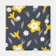 Retro flowers and leaves in white, grey, & ochre yellow over a midnight blue background. Background colour can be changed.