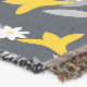A quality printed throw has its advantages. This is a much finer weave throw than its loopier cousins, and though lighter, it is worth the investment for custom room accessorizing. The back is much prettier than the typical brown, and the fringe on the long sides very vivid, the selvage nicely done. Before photographing, I washed the throw in cold water, delicate, with a thicker woven throw the same size. On tumble dry low, this throw was dry in half the time as the other. This is a very practical quality if you use throws for furniture covers or to wrap up in frequently. The sleekness of the fabric makes it a great layer for accenting or protecting without the feeling of sitting on too much stuff. Perfect for napping or when you feel a light chill coming on. The color printing is beautiful and on this fabric, matched the design and color of my Photoshop image. This is an advantage for blending room fabrics and colors. The fringe on the short sides prints the colors from the design image and therefore varies from the side fringe. I streaked a white fractal line through the plaid pattern to give the illusion of weaving. This printed as crisp as an illusory thread, and put some white in the short side fringe, showing another advantage of print vs loomed- for artistic purposes, line lines, detail, and color integrity can be planned and preserved. My loomed throws have color limitations and more of a needlepoint texture. Print throws reproduce an exact image. The throw felt a little stiff straight out of the package, but this went away in the first delicate wash. Of course I searched the wash water for ink or bleeding and there was none.