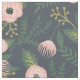 Chic floral patterned fabric features coral pink flowers and lush green leaves on a deep, smoky midnight blue background. Trendy blush pink and navy blue colour palette is perfect for your next craft or decor project. To change the scale of this pattern, simply click "Customise it" and adjust the tile size.
