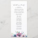 Elegant floral wedding program featuring your names encircled by a wreath of purple, mauve & blue watercolor flowers with green leaves. Personalise the floral wedding programs by adding your wedding date & location, order of events, and wedding party on the back. Designed to coordinate with our Midnight Blooms wedding collection.