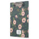 Our chic floral monogrammed clipboard makes a stylish addition to your office or home! Pretty blush and navy design features a pattern of coral pink flowers and lush green leaves on a deep, smoky midnight blue background. Personalise with your single initial monogram in matching midnight navy blue, or delete the sample initial, decorative dots and white badge element if not personalising.